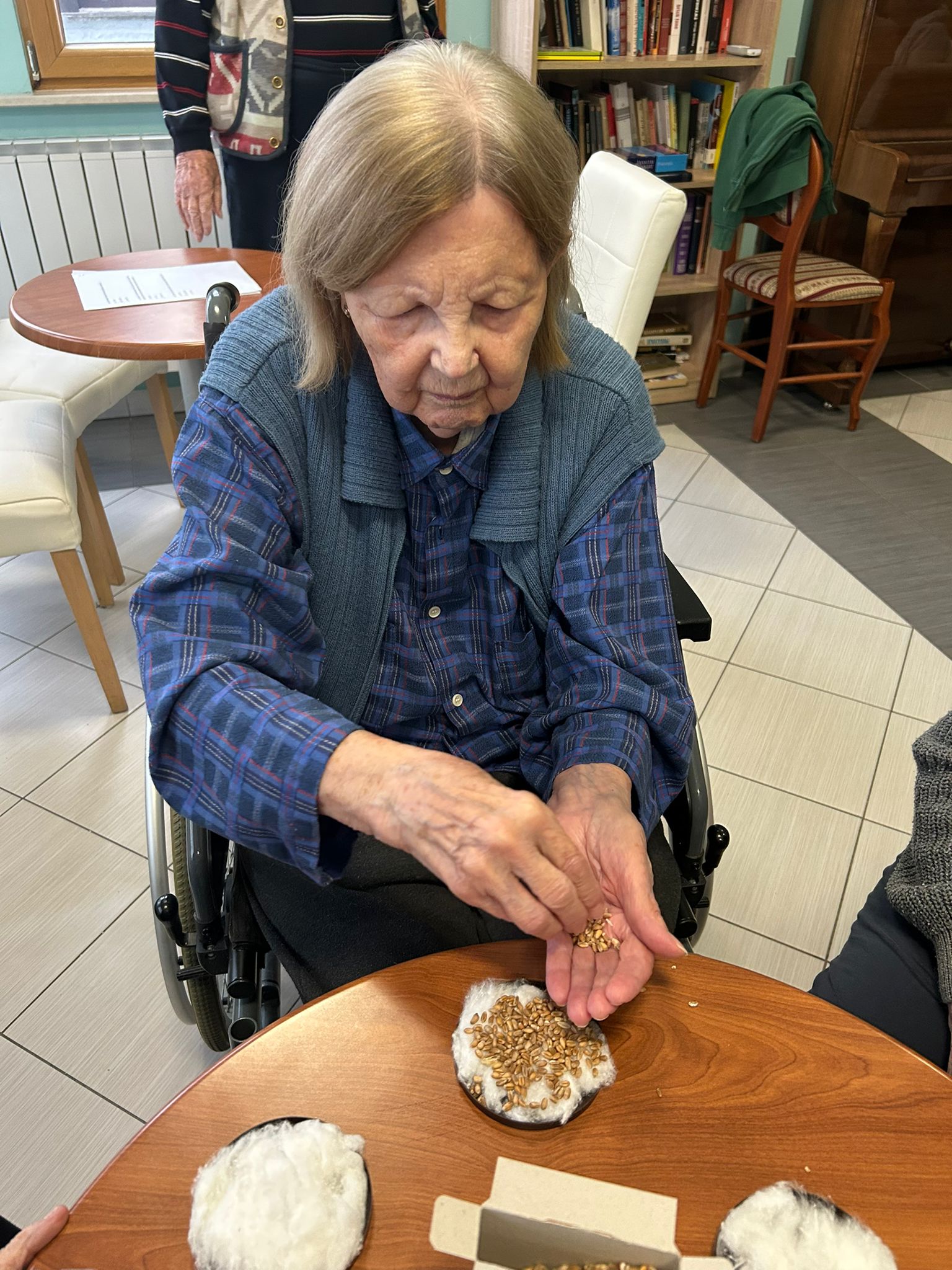 Jedan od takvih trenutaka obilježili smo na blagdan svete Lucije, kada su naši korisnici zajedno sudjelovali u sadnji božićne pšenice. Ovaj tradicionalni običaj simbolizira nadu, vjeru i novi početak, a ujedno označava i početak iščekivanja Božića. Tijekom aktivnosti korisnici su razgovarali o značenju pšenice, prisjećali se kako su taj običaj njegovali u svojim obiteljima te dijelili uspomene iz prošlih vremena. Sadnja pšenice potaknula je osjećaj povezanosti i donijela smirenu, radosnu atmosferu u dom.
