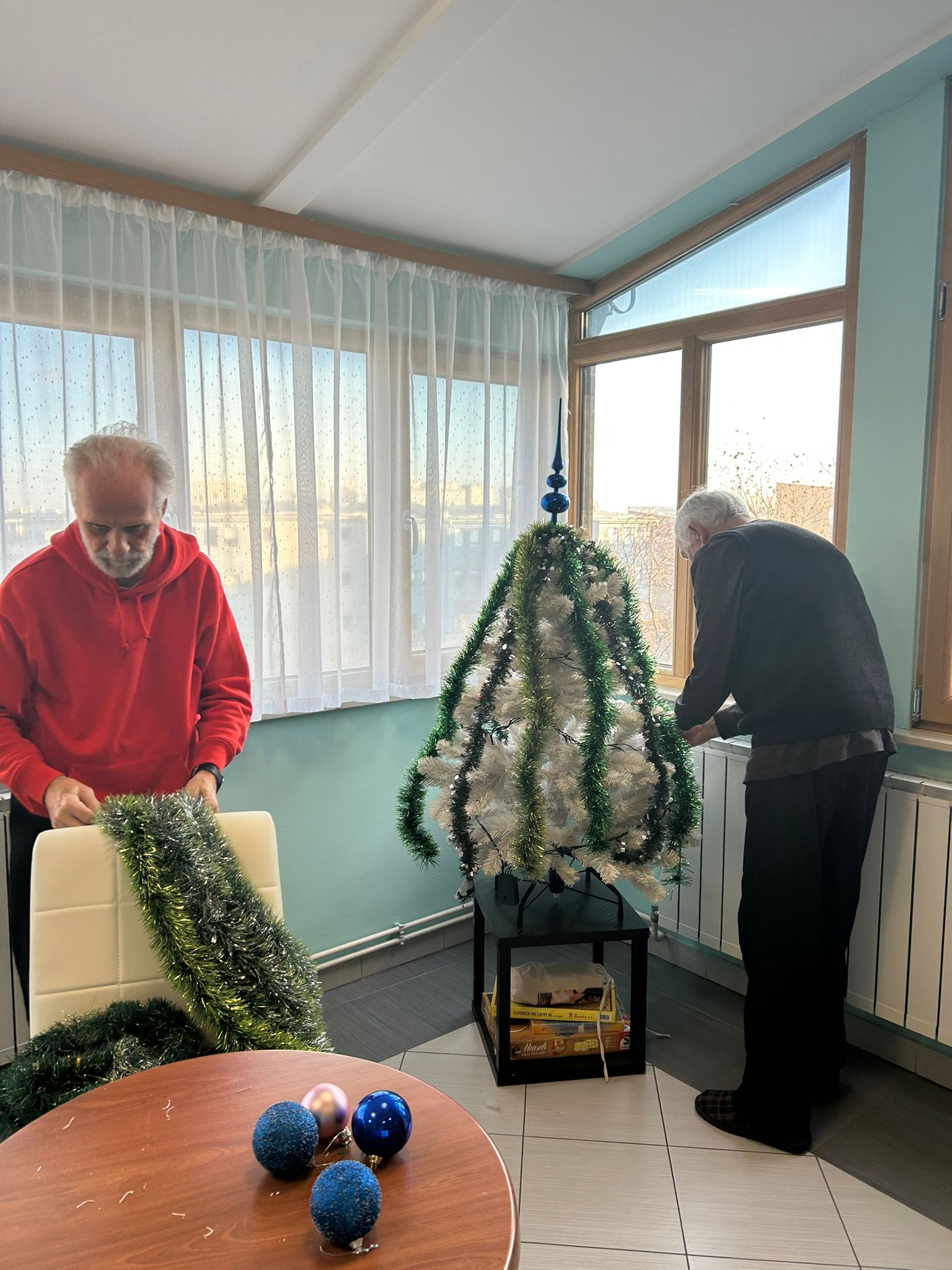 U blagdanskom duhu nastavili smo druženje kroz zajedničko kićenje božićne jelke. Uz pomoć radne terapeutkinje, korisnici su s veseljem sudjelovali u odabiru ukrasa, njihovom postavljanju i uređivanju prostora. Svaki ukras nosio je svoju priču, a zajednički rad potaknuo je kreativnost, motoričke vještine i međusobnu suradnju. Prostor doma ispunio se svjetlima, bojama i osmijesima, a božićna jelka postala je simbol zajedništva i topline.