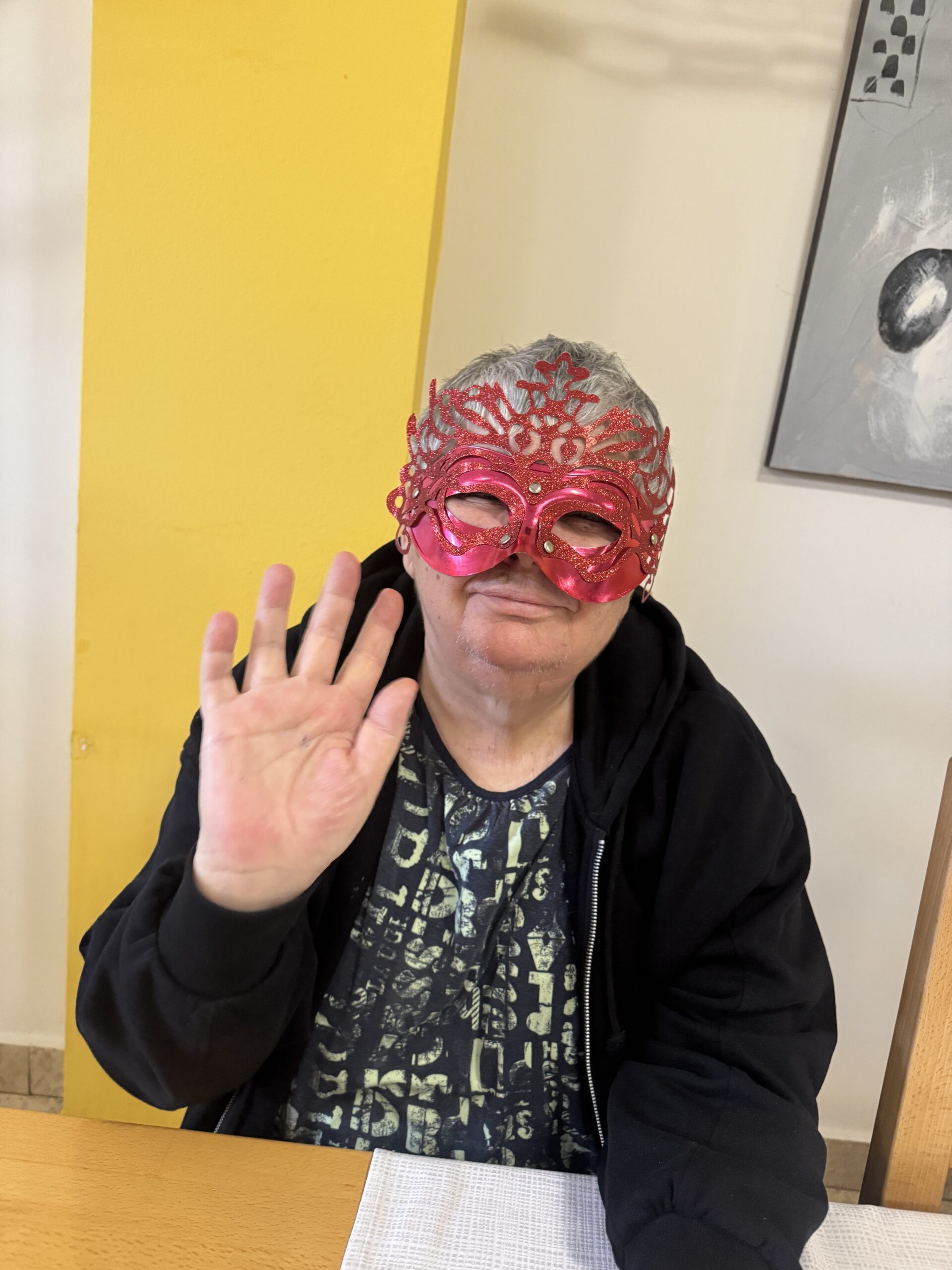 Nakon radionice uslijedila je i proslava maškara u domu. Korisnici su nosili svoje izrađene maske, sudjelovali u druženju i zajedničkom obilježavanju. Proslava je protekla u vedrom raspoloženju, uz razgovor i smijeh.