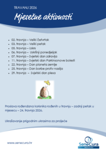 Mjesečni plan aktivnosti u domu SeneCura Trešnjevka – travanj 2026
